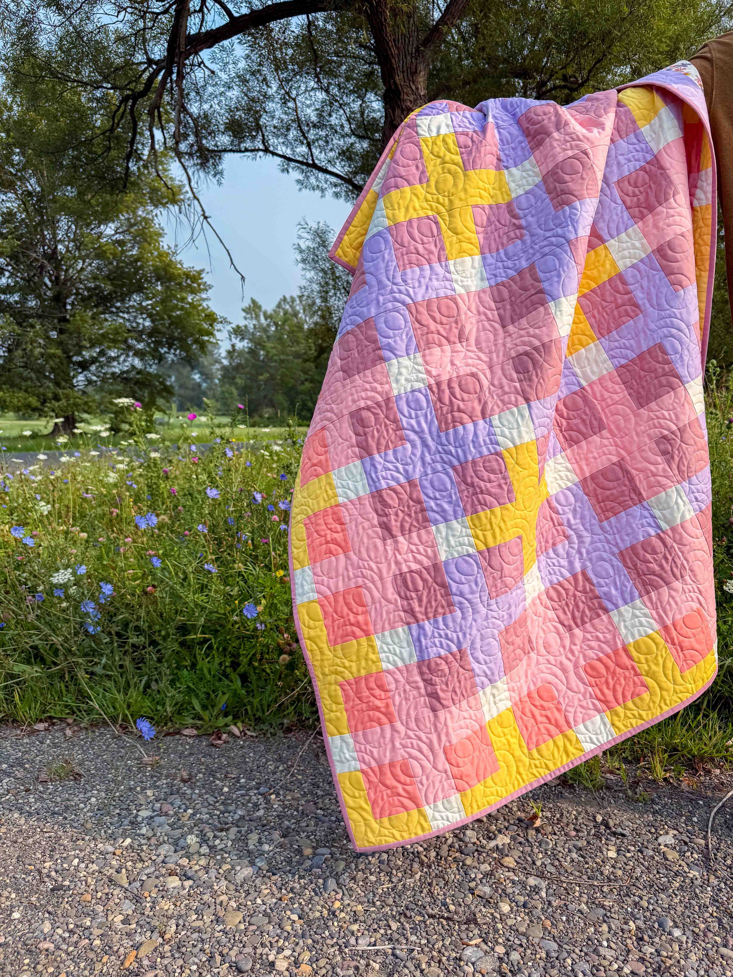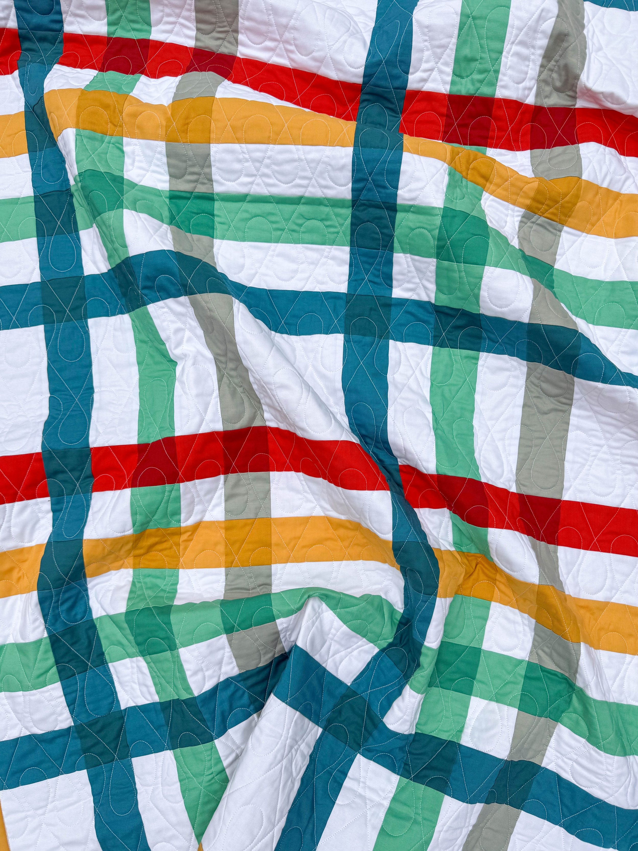 Art Gallery Fabrics, Dew + Moss Fabric Tour, by Alexandra Bordallo. Pixel Plaid quilt.